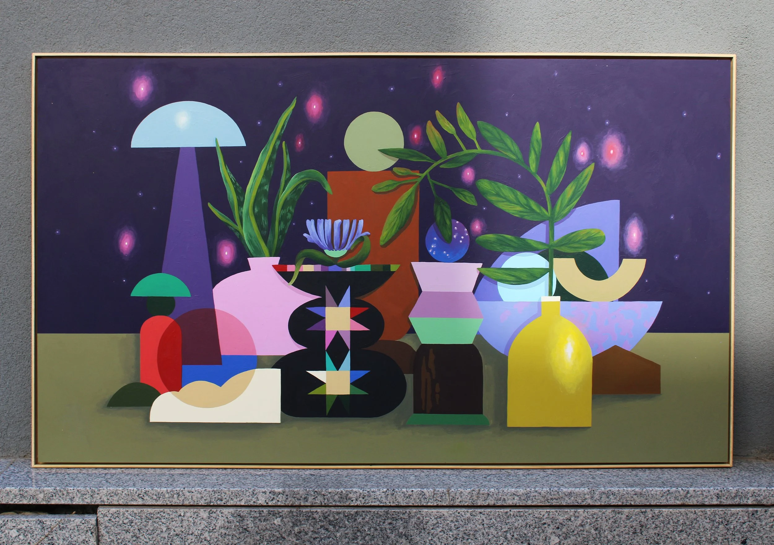 “Lanterns from the past,” 2024, (60 × 120 cm), pintura acrílica sobre madera - Colección privada